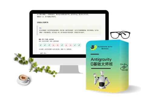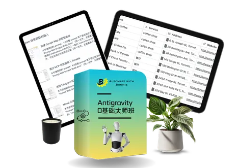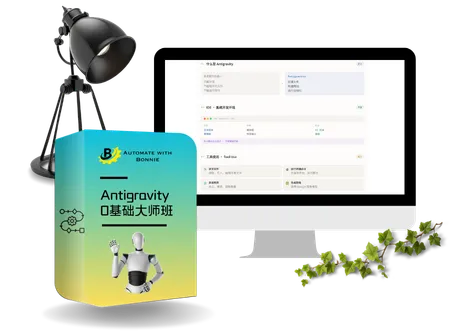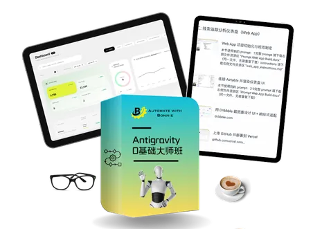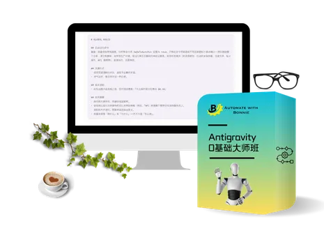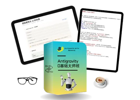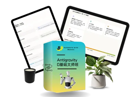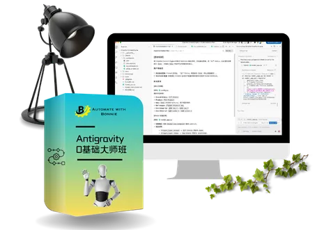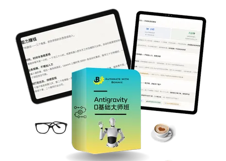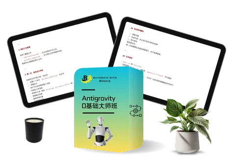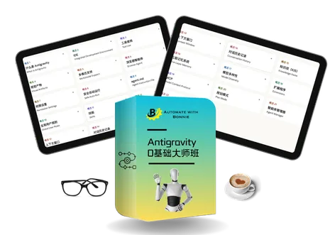 包括完整的Antigravity操作基础教学、三大商业级自动化实战项目演示,以及独家SCALE自动化构建五步法。购买后你还将获得所有项目的配套Prompt指令模版和完整的源码包,方便你直接下载复用。一小时内购买还可获得Bonus福利包。