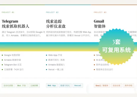 跟着我从零搭出三套真实可用的自动化系统,每一步都有对应的 prompt 和资源文件直接用